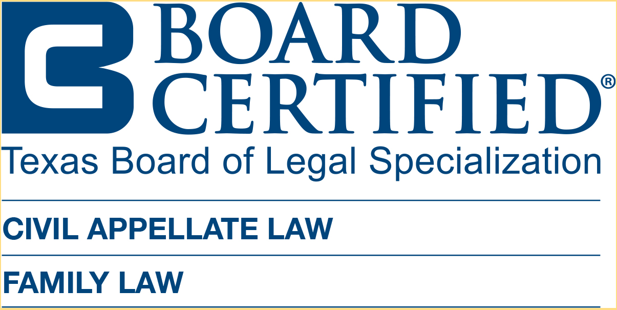 John is part of an elite group of fewer than 1% of Texas attorneys Double Board Certified by the Texas Board of Legal Specialization in both Family Law and Civil Appellate Law. His rare double board certification allows him to handle cases seamlessly from trial through appeal, ensuring clients’ interests are protected at every stage.